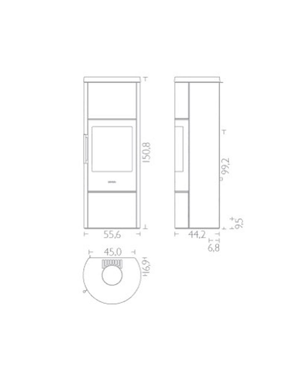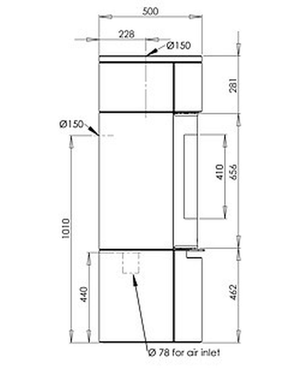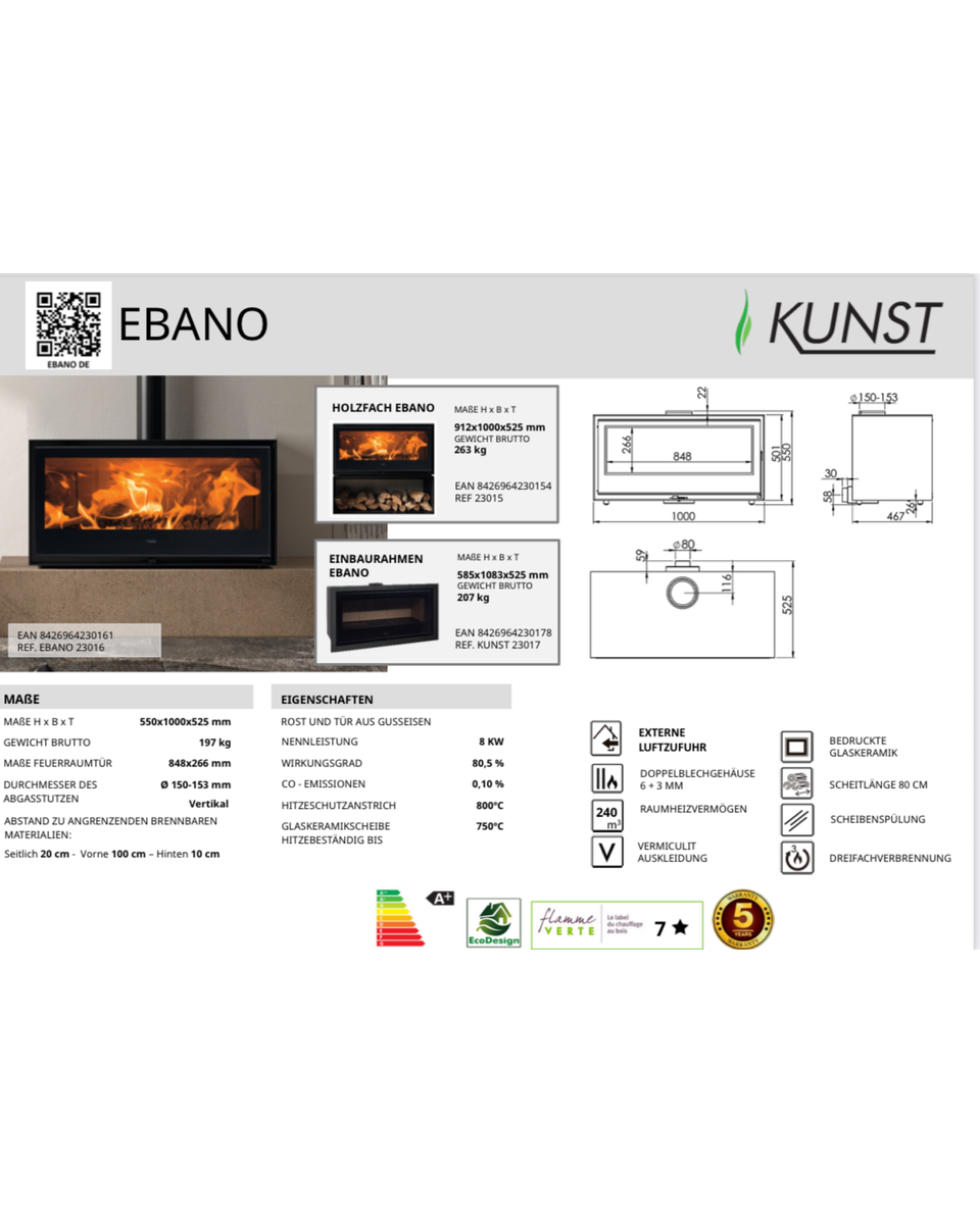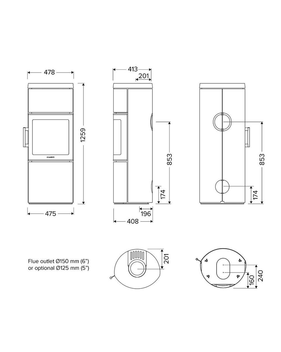 - Rauchrohranschluss: Ø150 mm (oben/hinten)