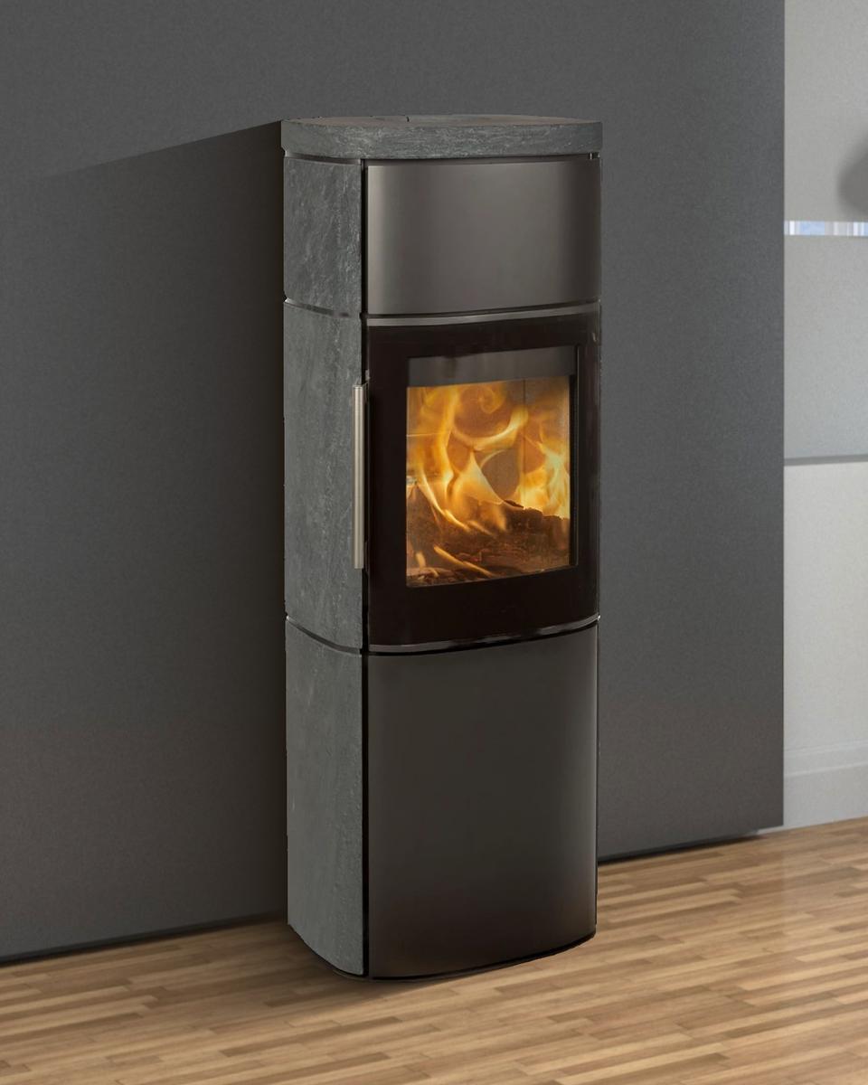 - Elegantes Design mit Specksteinverkleidung für natürliche Wärmespeicherung
