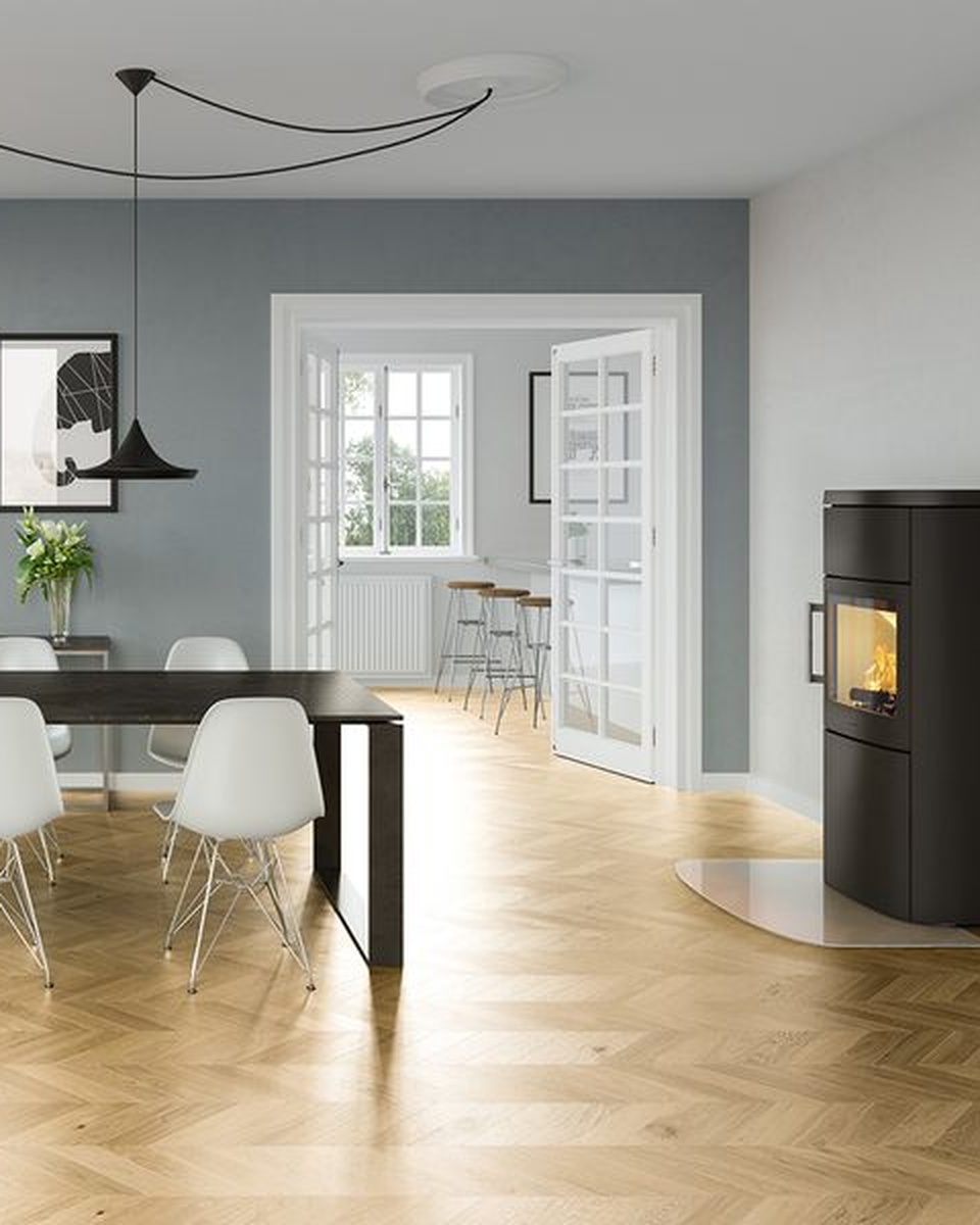 Der HWAM 3130m kombiniert elegantes skandinavisches Design mit modernster Verbrennungstechnik. Mit seiner schlanken, hohen Form (126 cm) und der großzügigen Panoramascheibe ist er ein stilvolles Möbelstück, das Wärme und Gemütlichkeit in jeden Wohnraum bringt.