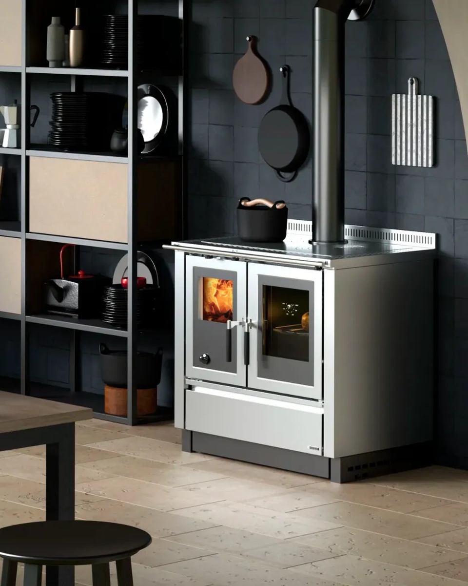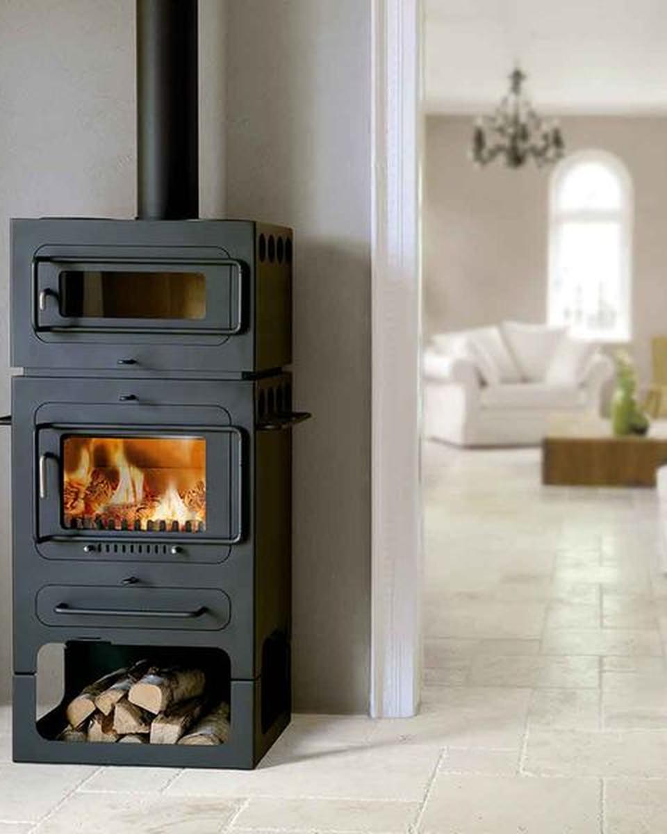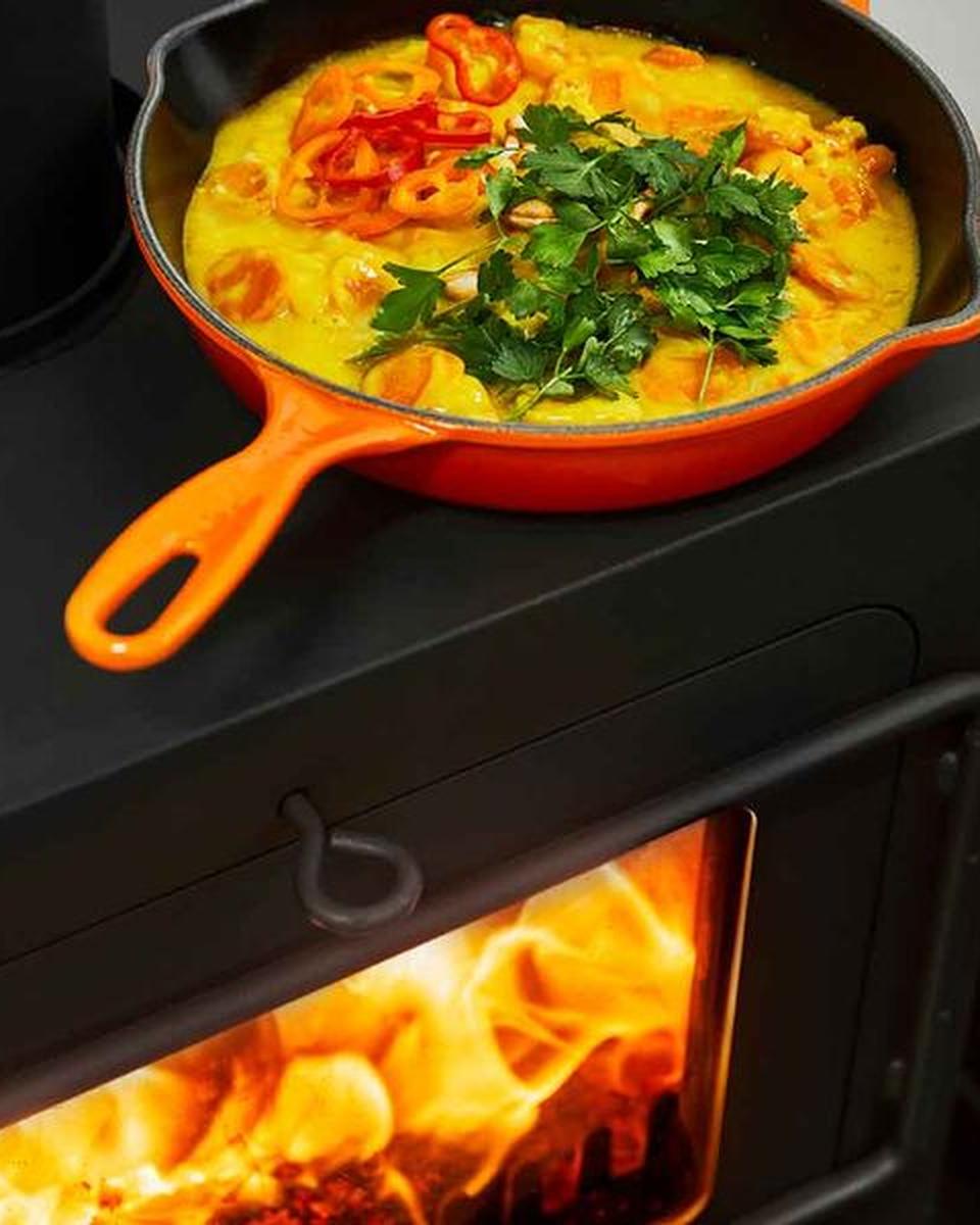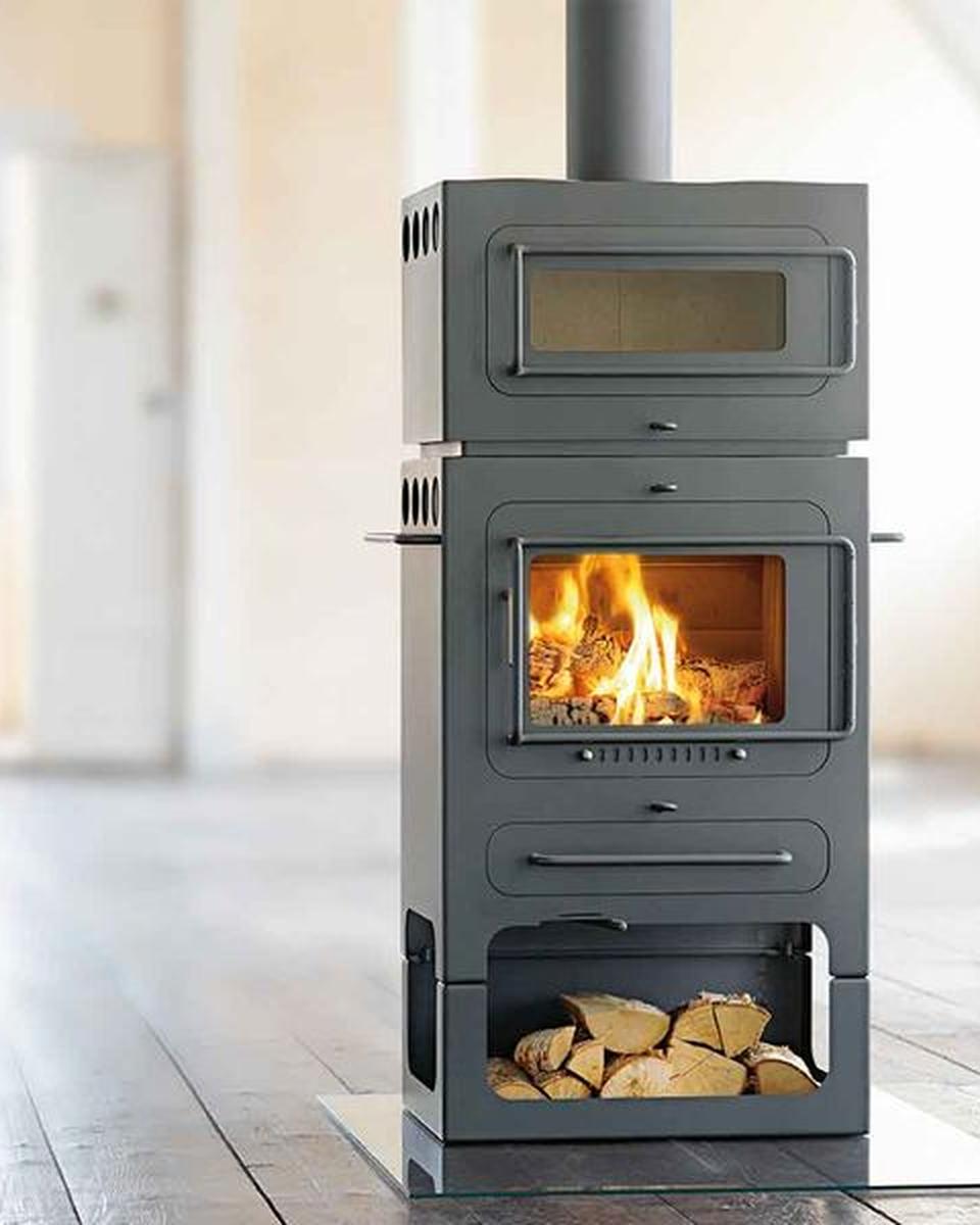 - Elegantes Design mit Specksteinverkleidung für langanhaltende Wärme