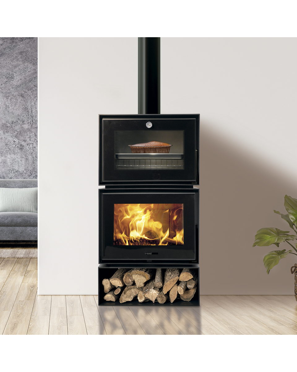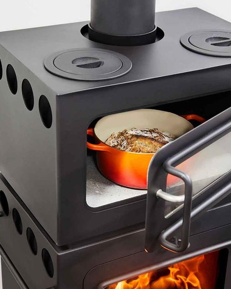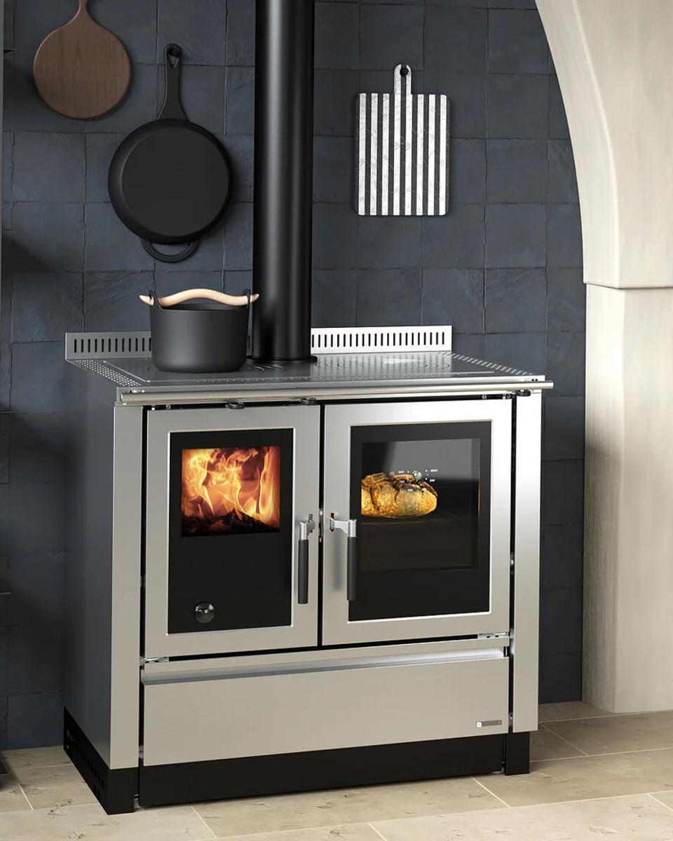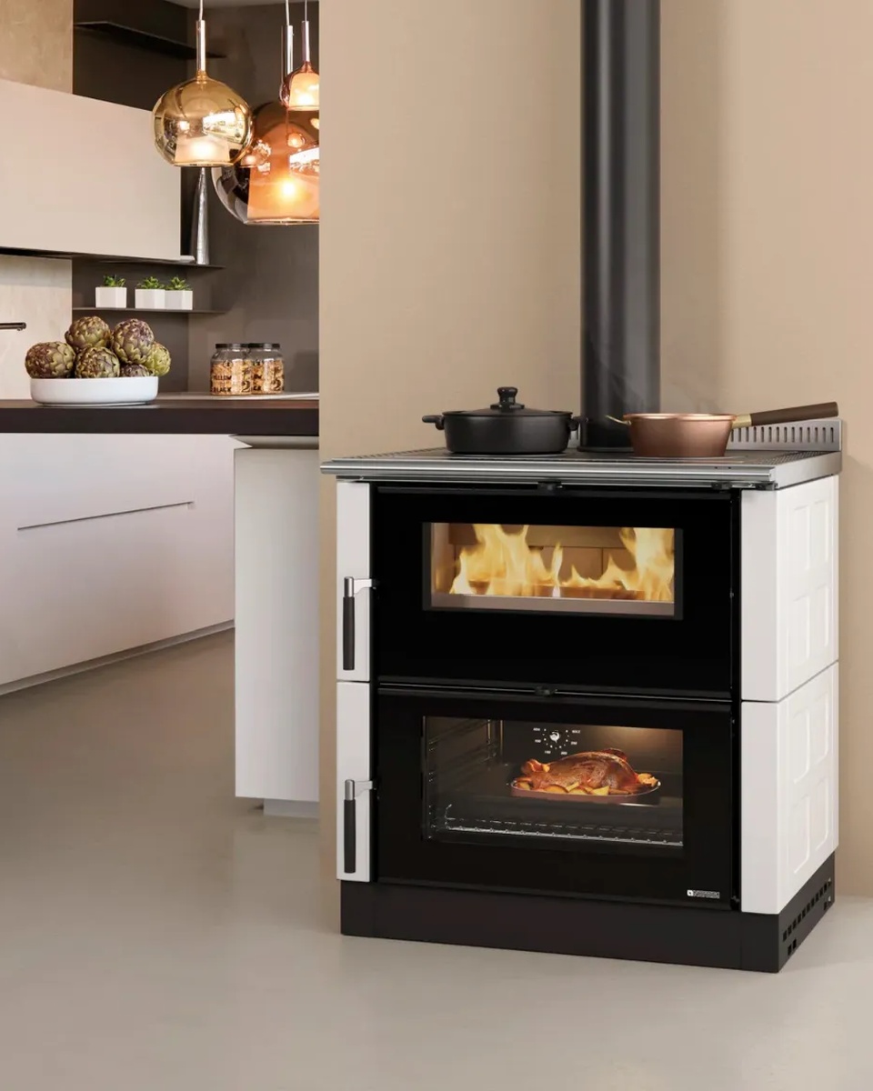 - Elegantes Design mit Specksteinverkleidung für langanhaltende Wärme