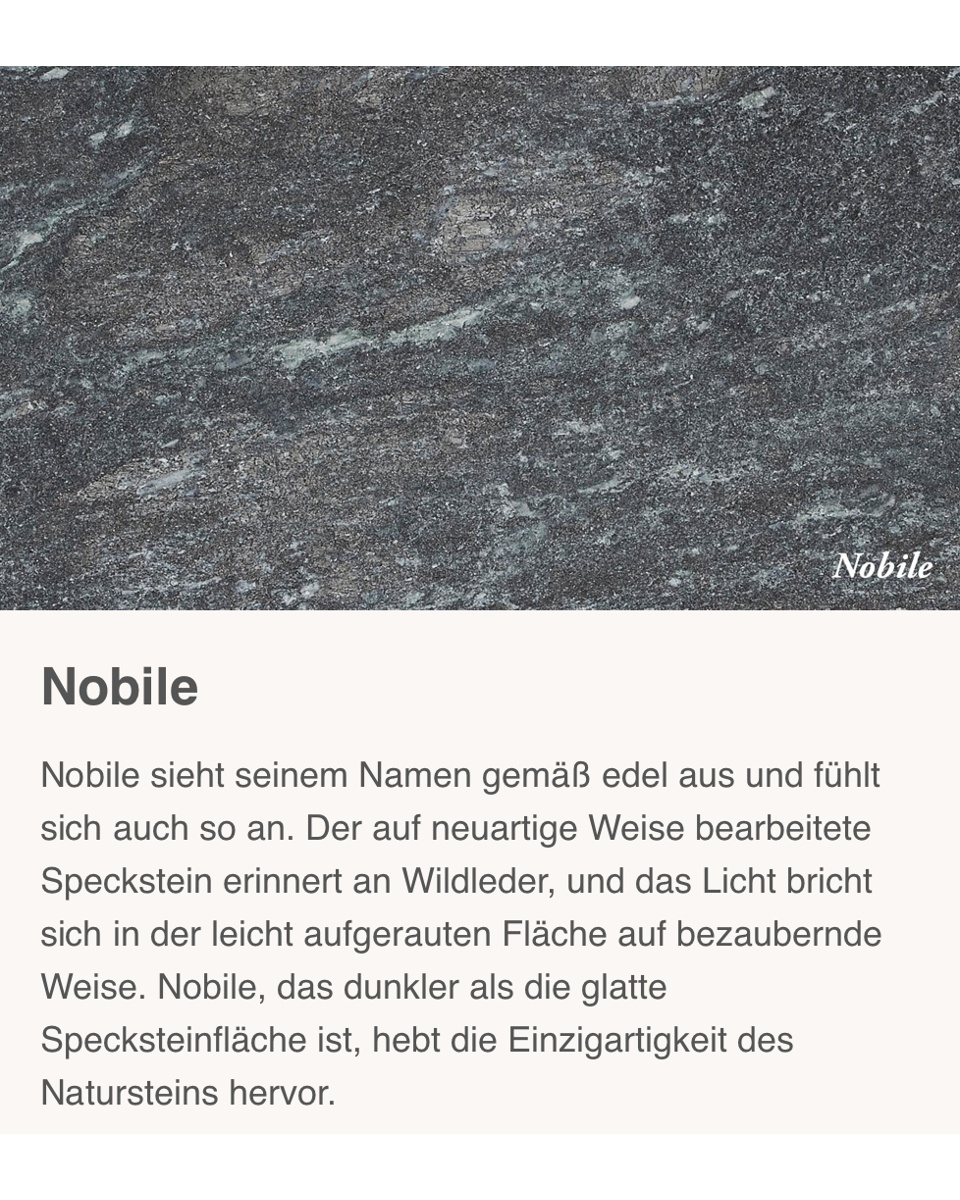 - Zeitloses Design: klare Formensprache und edle Speckstein-Oberfläche Nobile