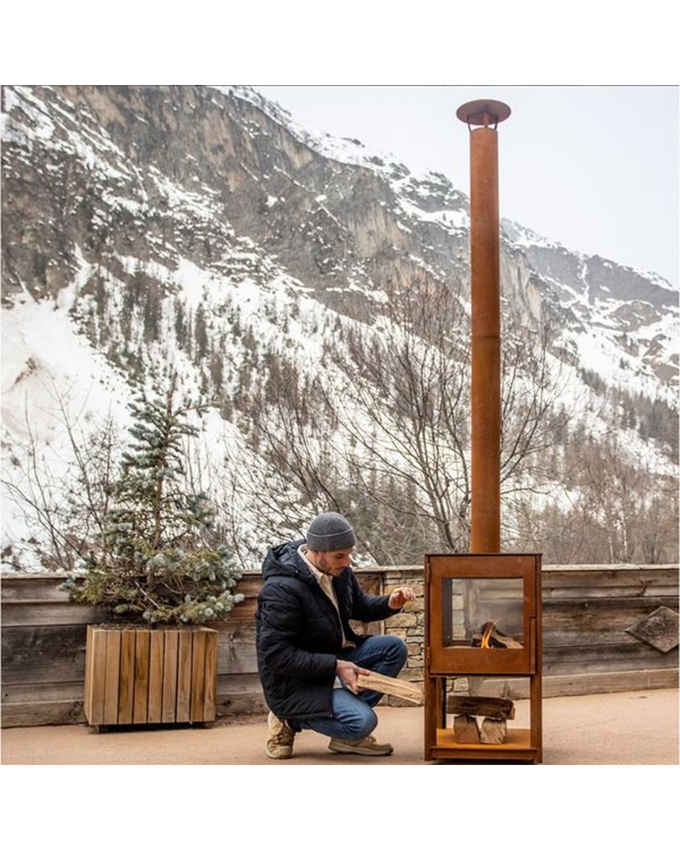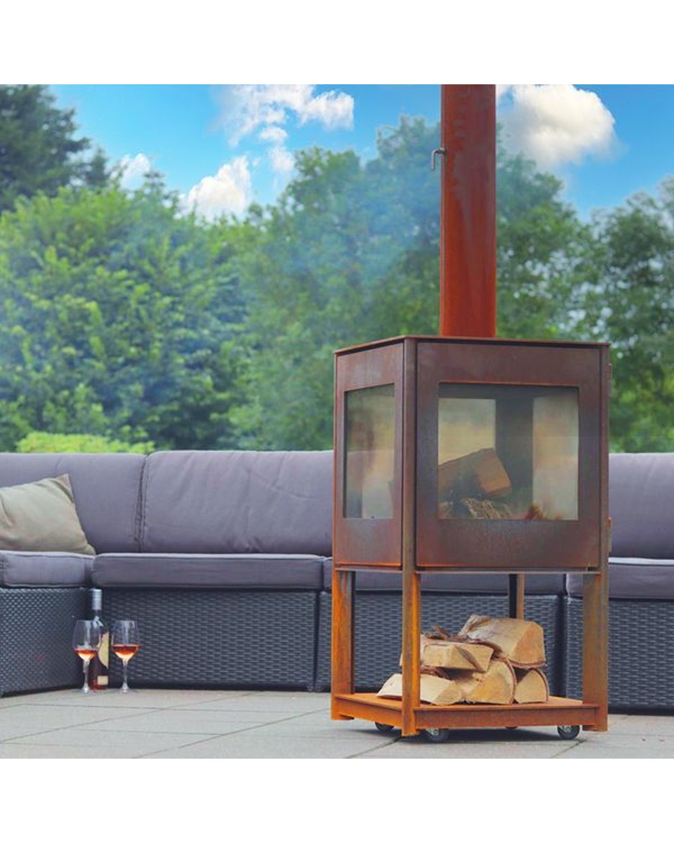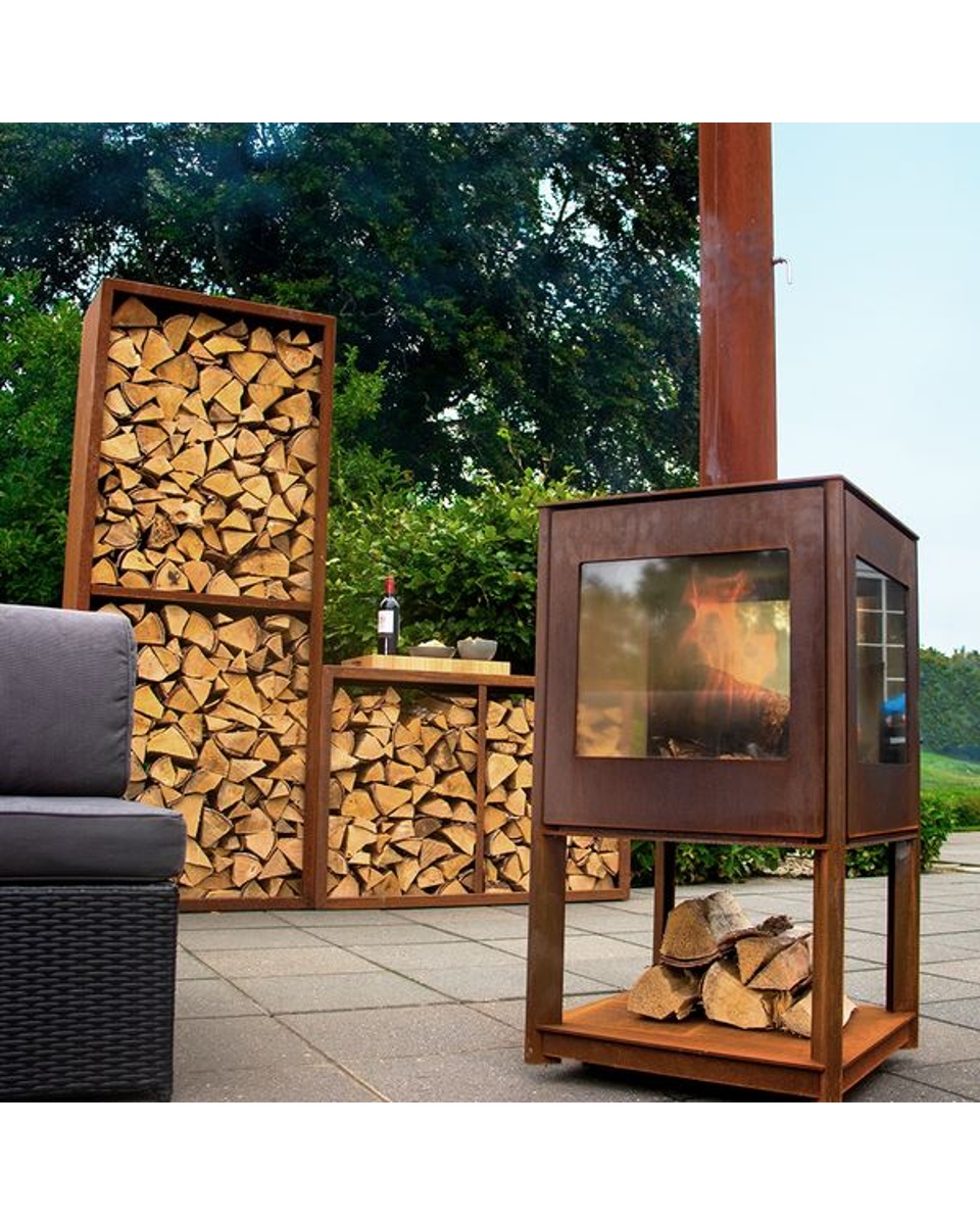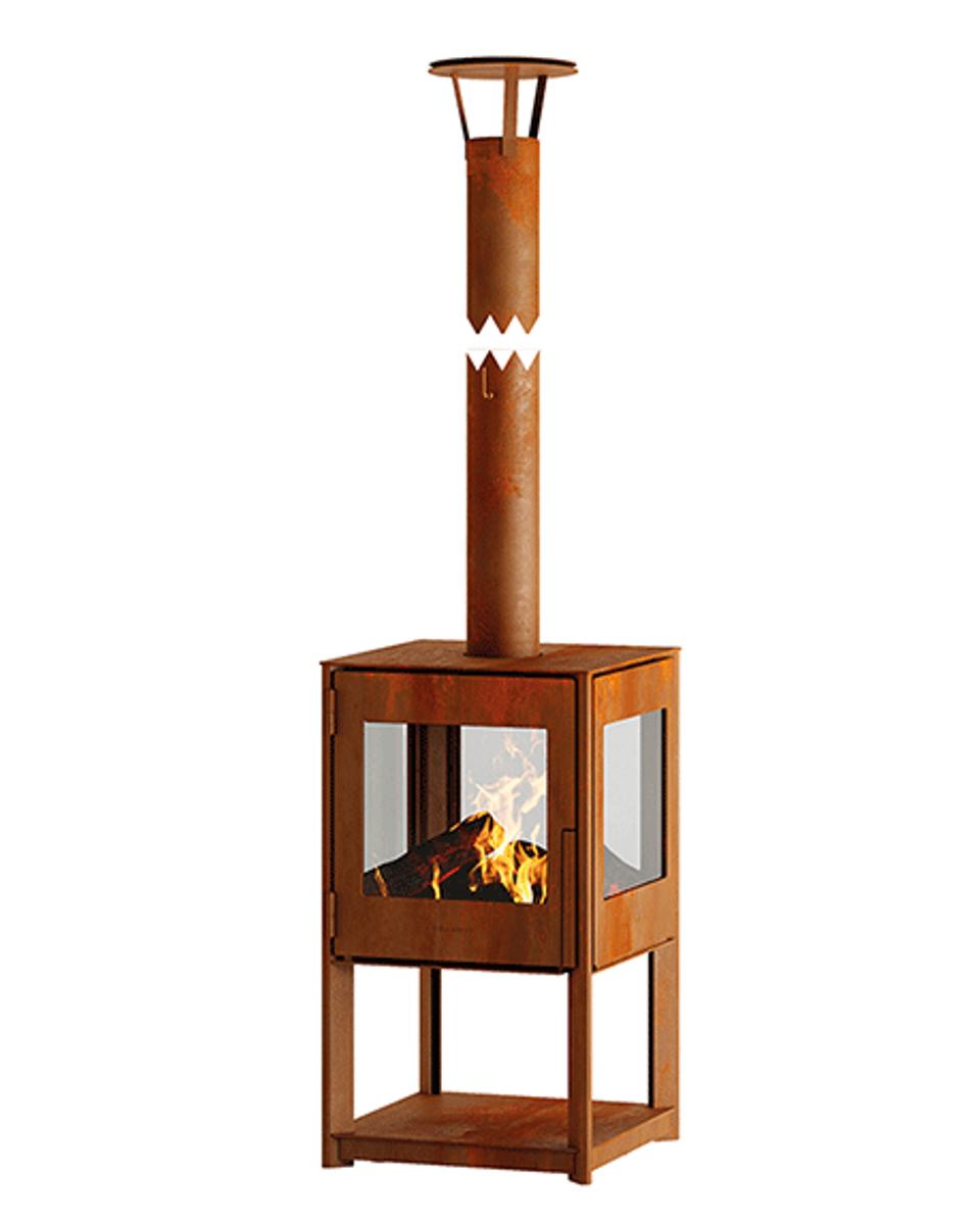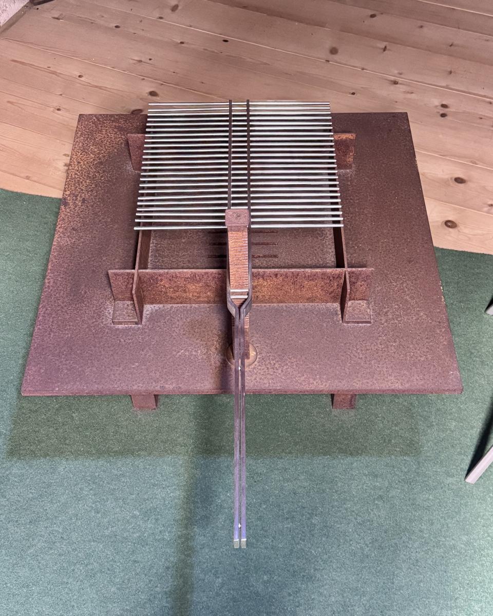 Der Korpus aus massivem, rostendem Stahl entwickelt im Laufe der Zeit eine natürliche Rostpatina, die nicht nur charaktervoll aussieht, sondern den Grill zusätzlich vor Witterung schützt. Der höhenverstellbare Grillrost aus Edelstahl garantiert eine lange Lebensdauer und ermöglicht eine flexible Temperatursteuerung, vom scharfen Anbraten bis zum langsamen Garen.