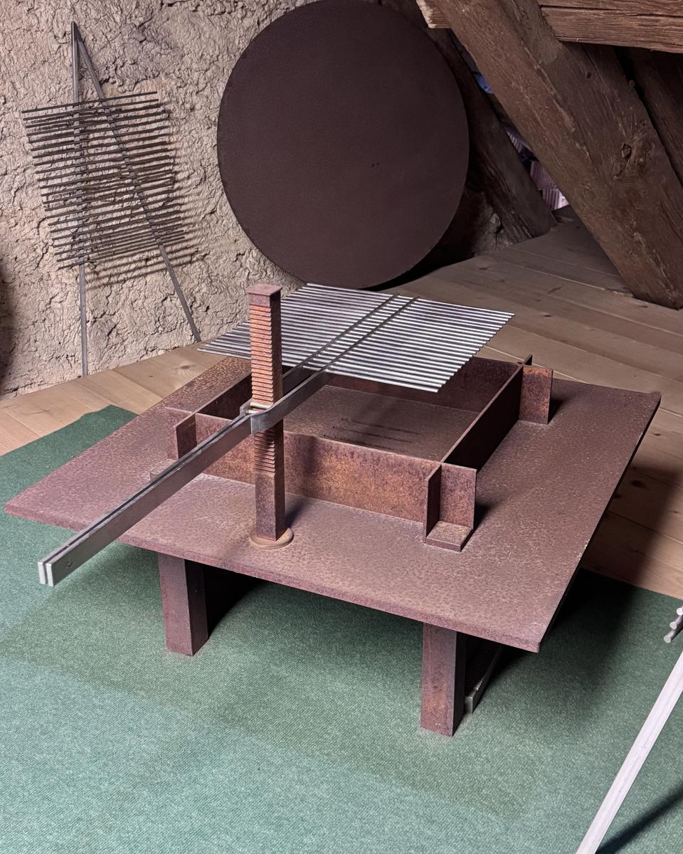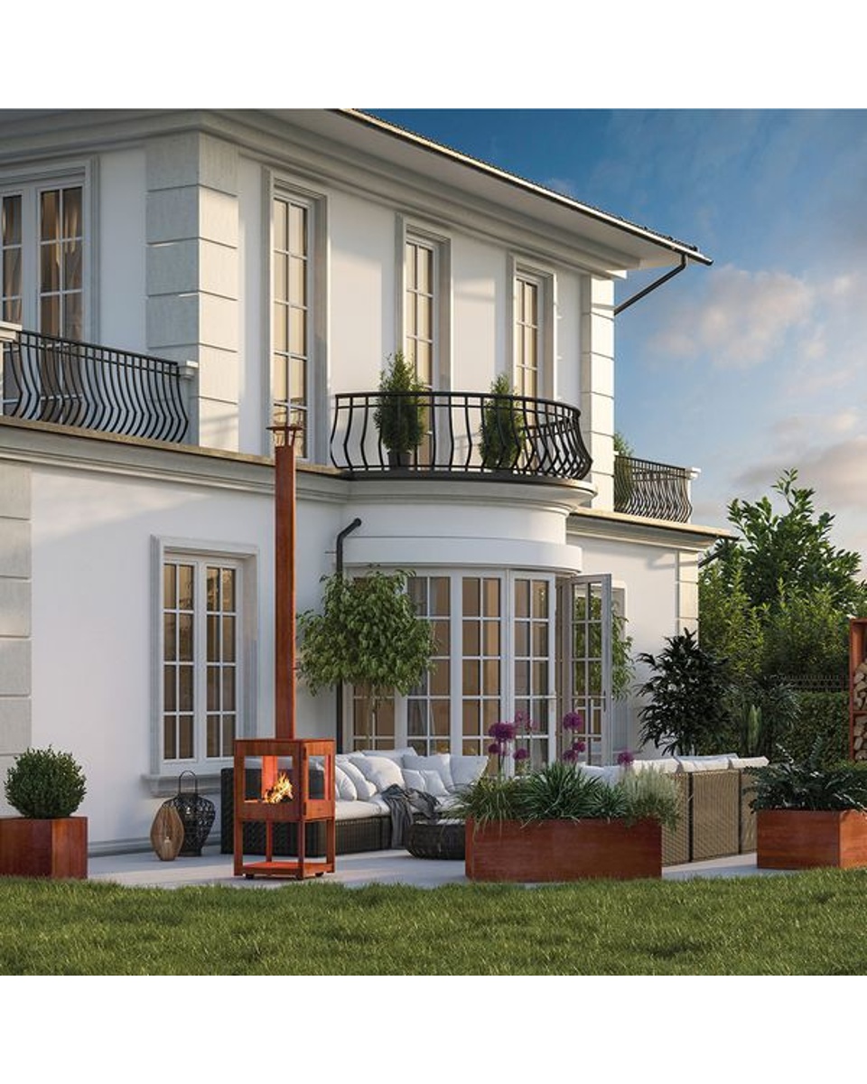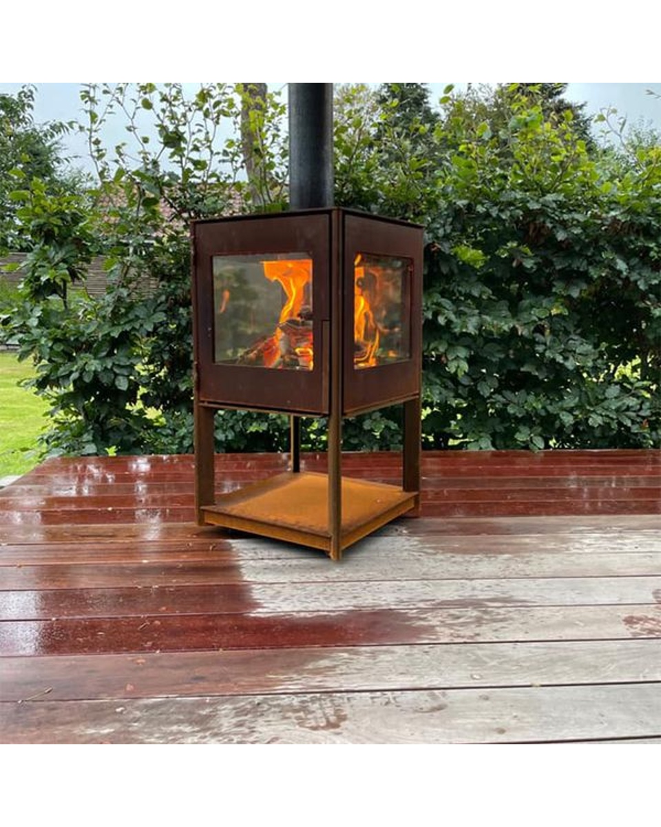- Massiver Korpus aus rostendem Stahl (80 × 80 cm)