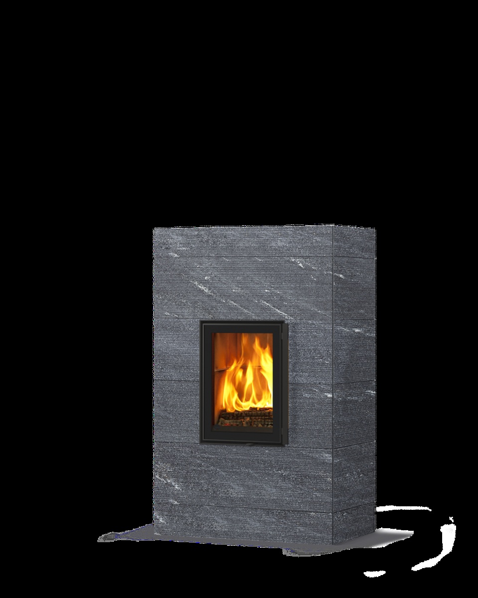 Der Tulikivi Koli S 2D 18 Grafia verbindet minimalistisches Design mit der einzigartigen Grafia-Specksteinoberfläche, die durch ein Wasserstrahlschnittverfahren ihre glitzernde, strukturierte Oberfläche erhält. Jede Front ist ein Unikat und bringt den Charakter des Natursteins auf besondere Weise zur Geltung.