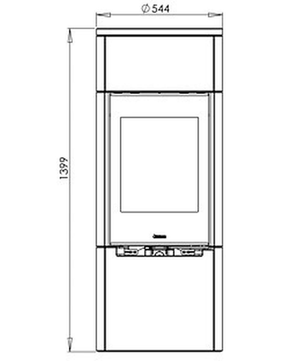 - Senkrechte Feuerraumtür mit grauschwarzem Metallrand und doppeltem Glas