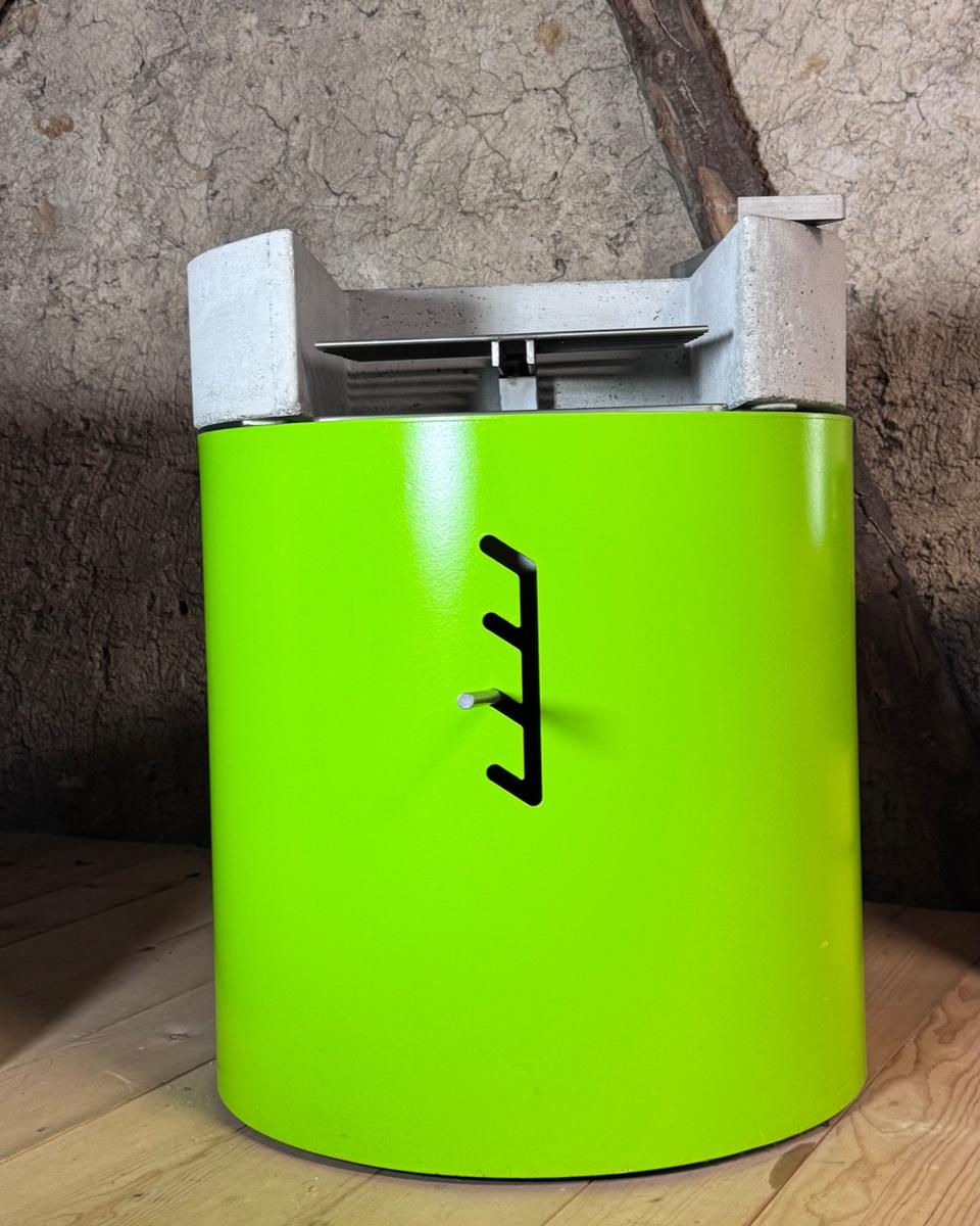 Die Kombination aus Beton-Elementen und farbiger Oberfläche macht diesen Grill zu einem besonderen Highlight für Garten und Terrasse.