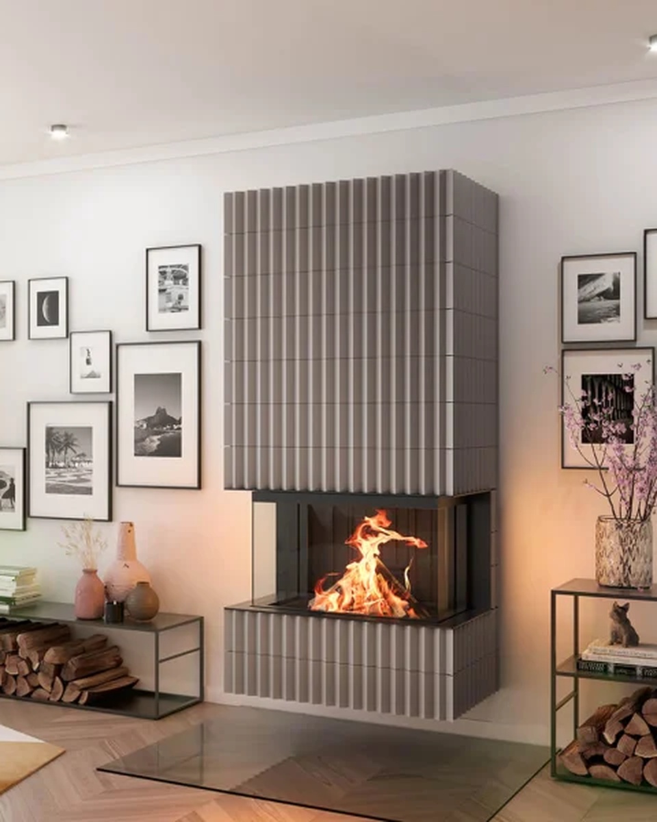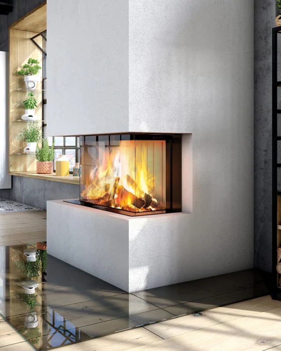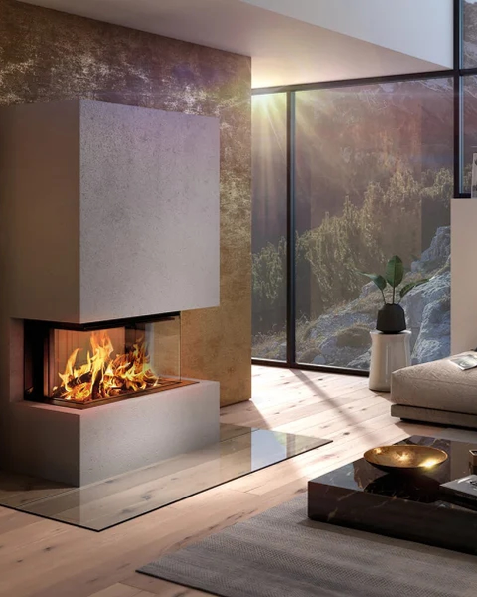 - Panorama-Sichtfenster für Flammengenuss aus drei Perspektiven